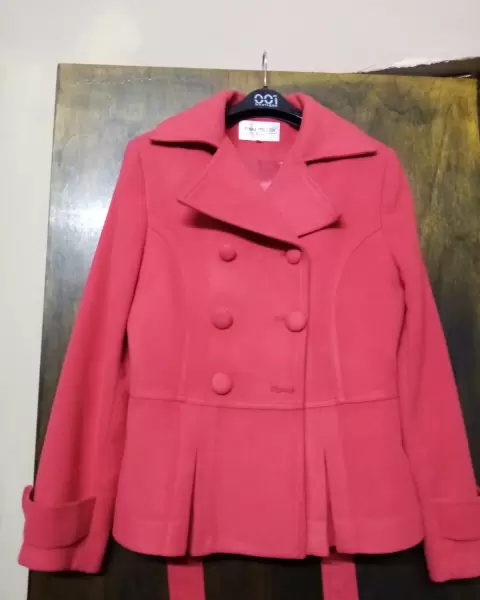 Blazer corto color marrón tela tipo paño con ci talla en cintura No tiene detalles queda hermoso.