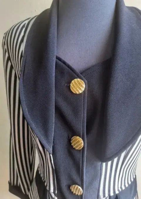 Hermoso blazer en blanco y negro a rayas Forma muy bien la cintura Recomiendo a talla 9 Excelente estado 👍