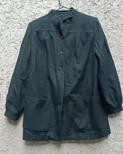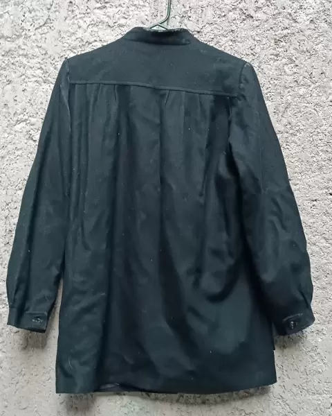 BLAZER DE USO, COLOR NEGRO,TALLA M,MARCA URPI,INTERIOR EN PERFECTO ESTADO,SIN DETALLE INTERIOR,LE HACE FALTA ULTIMO BOTON DE ENFRENTE Y MANGA IZQUIERDA (FOTO 2),MIDE DE HOMBRO A HOMBRO 38CM, DE MANGAS 57 CM,DE LARGO 75CM, DE AXILA A AXILA 58 CM, 2 BOLSILLOS FUNCIONALES AL FRENTE