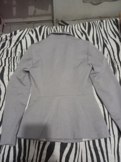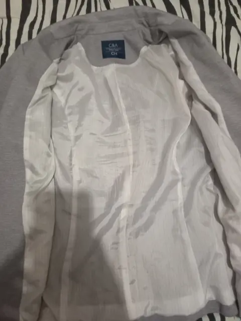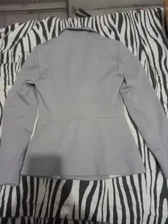 Blazer gris con forro por dentro, la tela es algo gruesa tiene boton la parte central, bolsas hacia los lados lo puedes usar casual o formal.