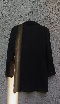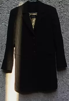 BLAZER LARGO DE USO TALLA M. BLAZER NEGRO LARGO, CON FRANJAS DORADAS,DE USO, SIN DETALLES,MARCA DANA BUCHMAN,TALLA 4, 98 % LANA, 2 % OTRAS,MIDE DE HOMBRO A HOMBRO 43 CM, DE AXILA A AXILA 55 CM, DE LARGO 87 CM,LOS BOLSILLOS NO SON FUNCIONALES