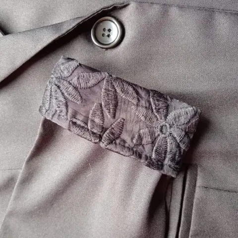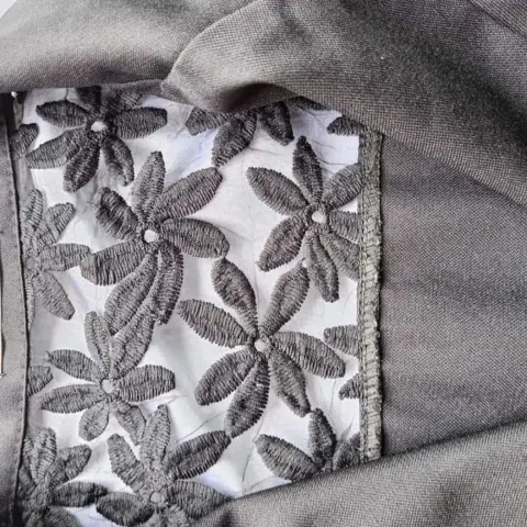 Blazer negro, con encaje en los puños y en la parte trasera, dice talla XL, pero por medidas es talla CH