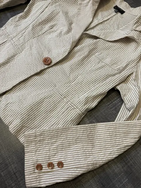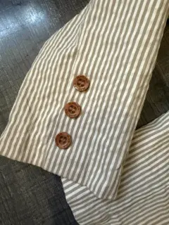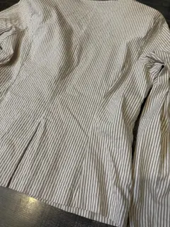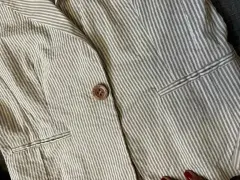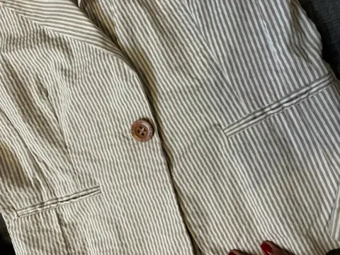 Saco casual claro. Saco de rayas semi-formar, Talla XL, Trae un solo botón adelante Corte cómodo Tiene de medida:44cm de ax/ax y 21cm el contorno de la cada axila. Tiene un poco de elasticidad ya que la tela no es rígida.