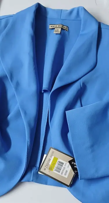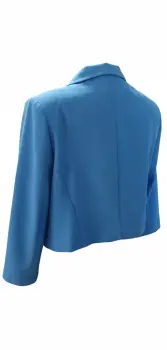¡Eleva tu estilo con este hermoso saco corto! Es el complemento perfecto para un look elegante y moderno. Su vibrante color azul cielo y su corte a la cintura lo hacen ideal para usar sobre vestidos, faldas o pantalones de tiro alto.El saco tiene un diseño de frente abierto, con solapas y mangas 3/4, perfectas para estilizar tus brazos. Lo mejor de todo es que está completamente nuevo y aún tiene sus etiquetas originales.