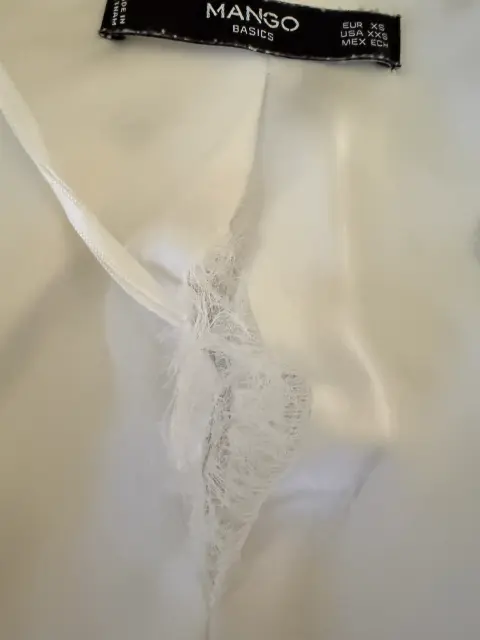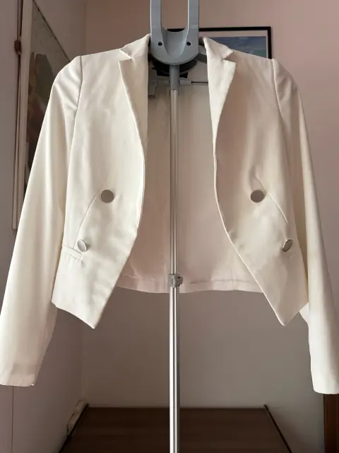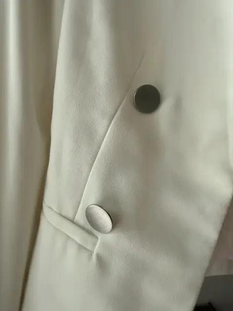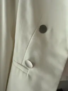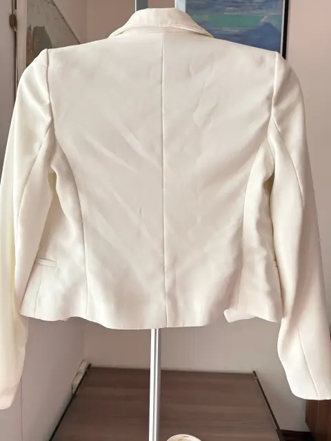 Saco blanco a las costillas marca Zara. Tiene unos botones al frente pero son de Adorno. Queda muy bonito. El único detalle es que está descosido de la parte del forro que puede regulars facilmente.