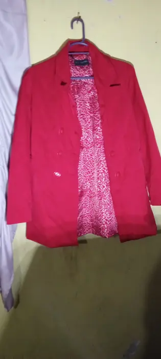 Saco rojo. En buen estado una sola puesta.Fácil de planchar Lavado fácil No sé destiñeLisaSin ningún detalle Cómoda y luce muy bonitaSolo una puesta