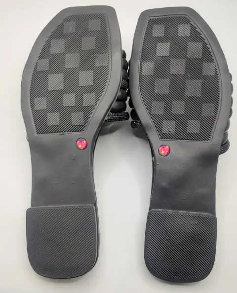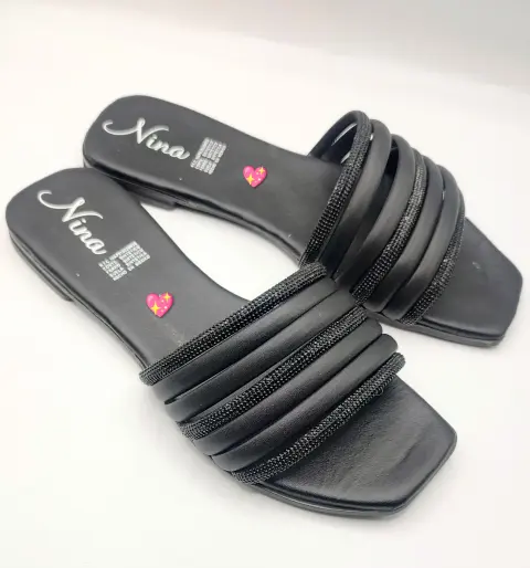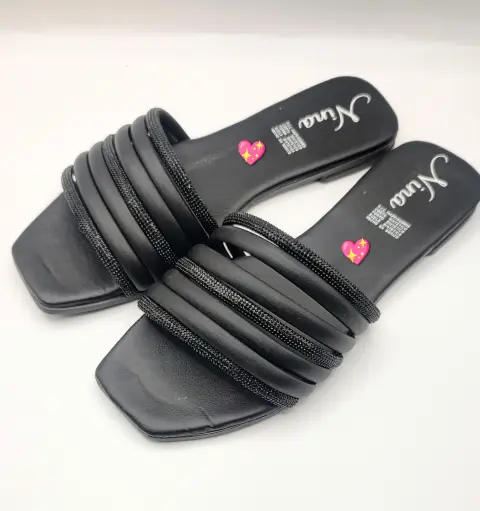 4 Sandalias negro brillo. Hermosas sandalias color negro, diseño de tiras de meter con bonitos adorno de correas de piedritas brillantes, suela plana cómoda. México Número #24cm. Pregúntame o visita mi closet para más modelos y numeración.