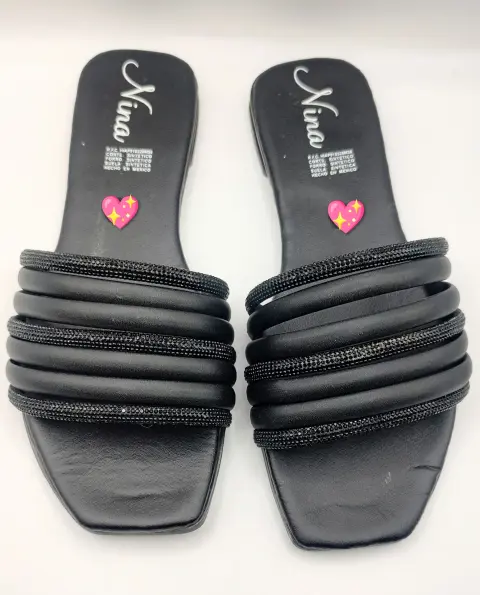 Hermosas sandalias color negro, diseño de tiras de meter con bonitos adorno de correas de piedritas brillantes, suela plana cómoda. México Número #25cm. Pregúntame o visita mi closet para más modelos y numeración.