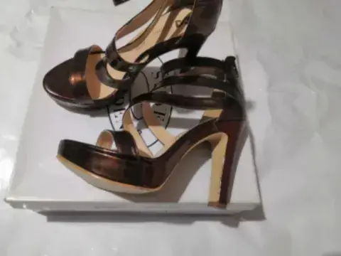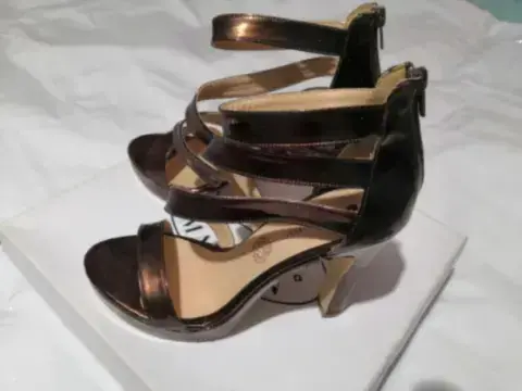 Plataformas talla 25.5 nuevas sin detalles de tiras, tono cafe cobre, material tipo charol