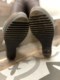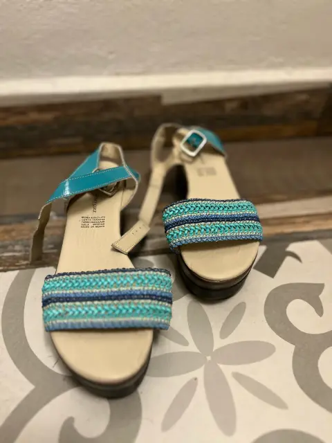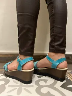 Sandalia con plataforma turquesa. Sandalias con plataforma baja de tonos azules, super cómodas. Talla 23.5. Plataforma de 6 cm. Marca Sweet Comfort.