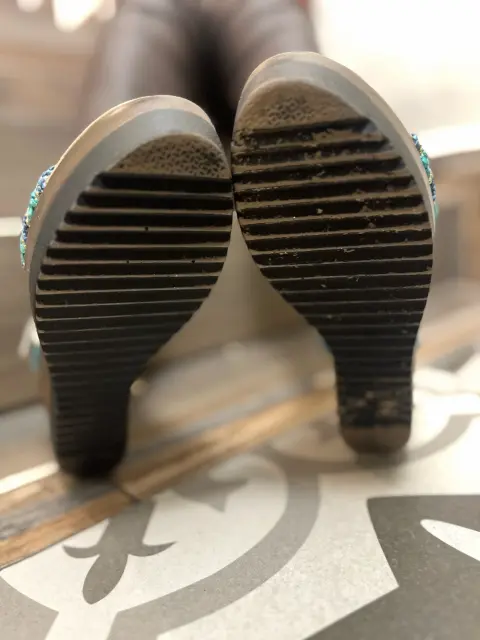 Sandalias con plataforma baja de tonos azules, super cómodas. Talla 23.5. Plataforma de 6 cm. Marca Sweet Comfort.