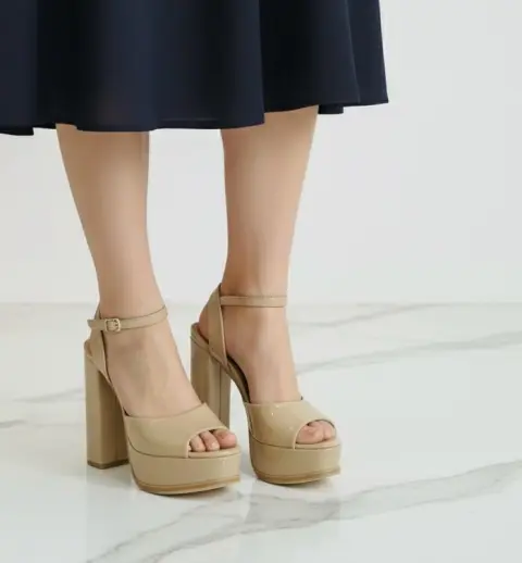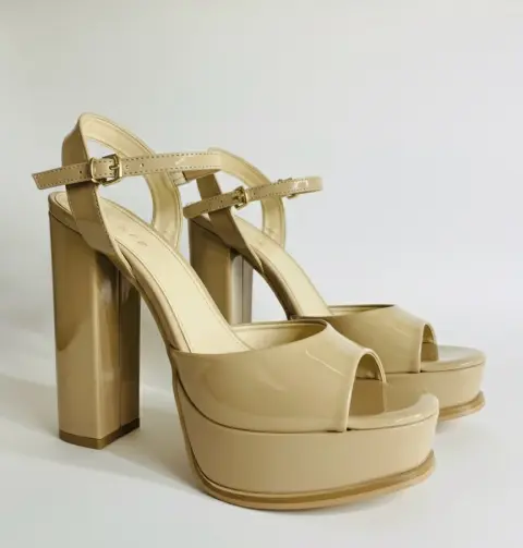 Sandalias de plataforma. • Marca: Erez• Talla: 4• Condición: Usadas una sola vez (como nuevas). Se encuentran en condiciones impecables, sin signos visibles de desgaste.✨ Características Destacadas• Color Sofisticado: Tonalidad nude/beige brillante (efecto charol), un color versátil que alarga visualmente la pierna y combina con absolutamente todo, desde jeans hasta vestidos de fiesta.• Diseño de Plataforma: La plataforma delantera no solo añade altura, sino que también reduce la inclinación percibida del tacón, proporcionando una pisada más cómoda y estable para que puedas bailar toda la noche.• Tacón Bloque (Grueso): El tacón ancho y robusto ofrece una máxima estabilidad y soporte, contrastando con la ligereza del diseño. Es la opción ideal para quienes desean altura sin sacrificar la comodidad.• Material: Acabado de charol que les da un look lujoso, elegante y fácil de limpiar.• Detalles: Cierre de hebilla ajustable en el tobillo para un ajuste perfecto y seguro.