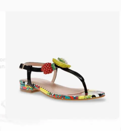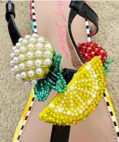 No hay verano completo sin sandalias!! Hermosas sandalias de colores con el motivo de frutas al frente con brillos.