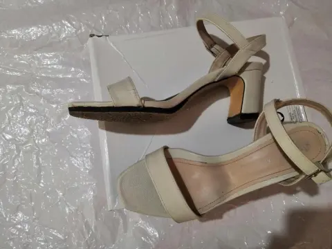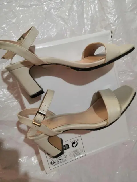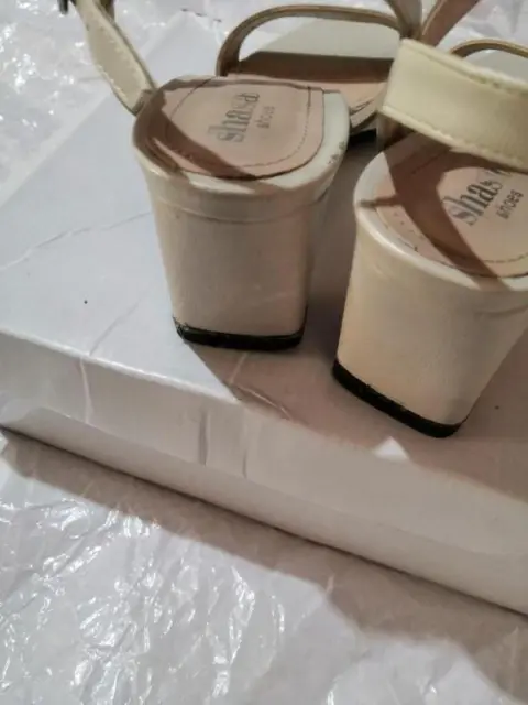 Sandalias talla 25 marca Shasa, color beige, se les puso suela antiderrapante para eliminar lo lisp de la suela original pero se guardaron y no se usaron, tacon es de 6.5 CM , sin detalles