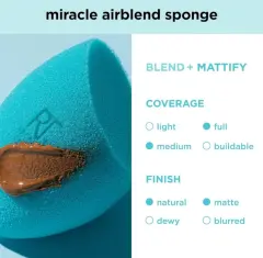 REAL TECHNIQUES, Duo de esponjas Miracle Airblend, Tecnología Memory Foam, para Cobertura Completa y Mate, Calidad Profesional,ideal para polvos (rosa) y líquidos (turquesa)