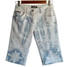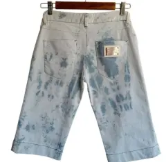 Bermudas Vintage - Denim DOLCE & GABBANA Talla 6. Increíbles bermudas de la icónica casa italiana Dolce & Gabbana, pertenecientes a la codiciada estética de principios de los 2000 (Y2K). Esta pieza combina el lujo artesanal con un estilo urbano y relajado.Acabado artesanal tipo tie-dye. Medidas tomadas por un solo lado: *Cintura 33 cm *Cadera 47 cm *Largo 56 cm