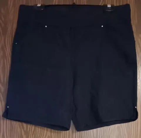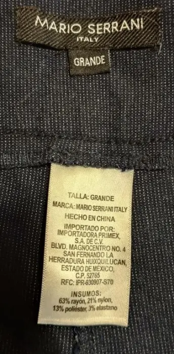 Short de tela. Color azul marino. Con bolsas laterales y abertura de 5 CM en el área de la pierna. Marca: Mario Serrani Italy. Talla: Grande. Hecho en: China. Fabricado en: 63% rayón, 21% nylon, 13% poliéster y Elastano 3%.Medidas: cintura: 44 CM. Largo: 49 CM.