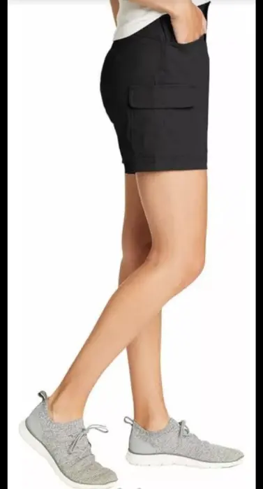SHORT PARA DAMA, MARCA EDDIE BAUER,CON PROTECTOR SOLAR 30,TALLA 10, EQUIVALENTE A 34 MX, NEGRO, CON BOLSILLOS FUNCIONALES (2) AL FRENTE Y 2 BOLSILLOS TIPO CARGO, MIDE CINTURA 84 CM,CADERA 98 CM,LARGO 41.5 CM
