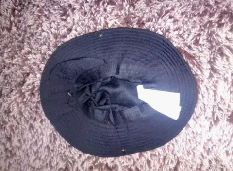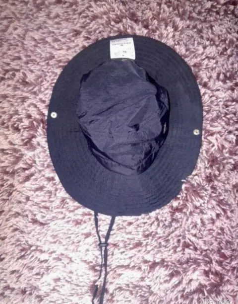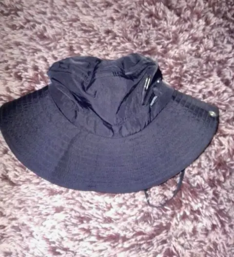Sombrero. Sombrero tipo pescador con cordones y broches laterales, nuevo con etiqueta.