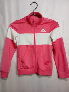 Bonita, cómoda y práctica sudadera color rosa con blanco marca Adidas para niñas de 7-8 años, está en perfecto estado.