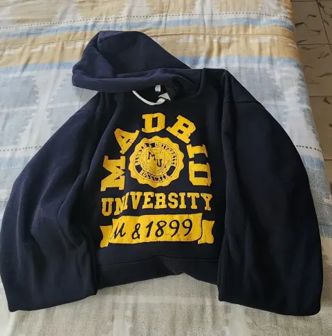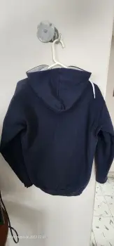 Sudadera azul marino, sin detalle, con bolsas de canguro al frente y capucha en excelentes condiciones. Comprada en europa.
