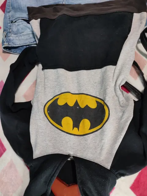 •Te interesa? Escucho ofertas•Deseas varias prendas? armo tu paquete✨ Sudadera gris claro con contrastes negros, estampado al frente de Batman. Bolsillo delantero. Gorro con orejitas. Muy linda 😍 Unitalla, queda a Ch - M