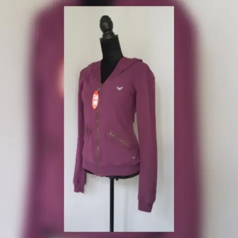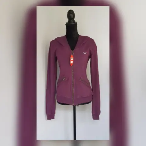 Sudadera color MORADO modelo Garmentdye-Lisa, capucha integrada NO DESMONTABLE, manga larga terminada en puño, cierre p/cremallera y 2 bolsos vivo delanteros c/cremallera. Talla G. Dimensiones cms: 43 hombro, 46 axila, 41 cintura, 43 zona baja, 63 largo, 72 largo manga. 100% algodón. Para lavado en casa.***Esta marca maneja prendas de extraordinaria calidad, su algodón es orgánico y soporta ciclos de lavado en máquina sin problemas, no se deslavan los estampados y las telas salen casi sin arrugas.***El tono morado de la sudadera es muy bello***