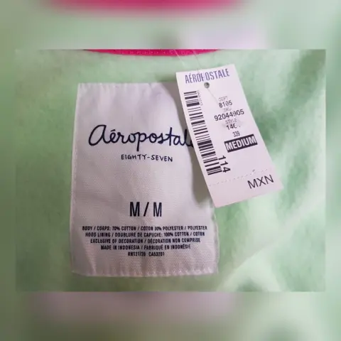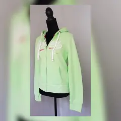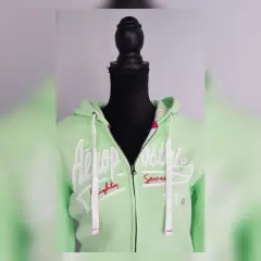 Sudadera color VERDE MENTA, capucha integrada NO DESMONTABLE, manga larga terminada en puño, cierre p/cremallera y bolso delantero tipo canguro. Talla M. Dimensiones cms: 42 hombro, 50 axila, 46 cintura, 44 zona baja, 60 largo, 66 largo manga. 70% algodón, 30% poliéster. Para lavado en casa.