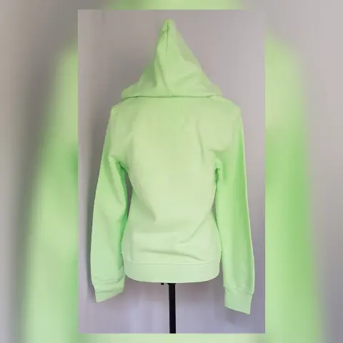 Sudadera con Capucha y Bolso. Sudadera color VERDE MENTA, capucha integrada NO DESMONTABLE, manga larga terminada en puño, cierre p/cremallera y bolso delantero tipo canguro. Talla M. Dimensiones cms: 42 hombro, 50 axila, 46 cintura, 44 zona baja, 60 largo, 66 largo manga. 70% algodón, 30% poliéster. Para lavado en casa.