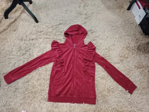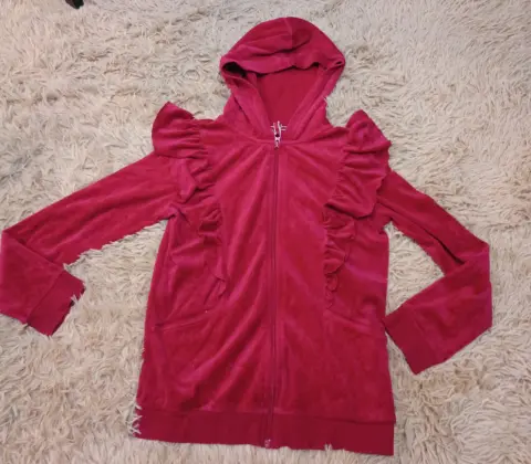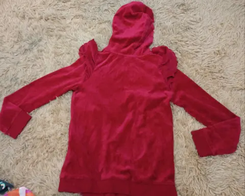 SUDADERA DE USO EN PERFECTO ESTADO,CON CAPUCHA,COLOR ROJO, TRAE OLANES AL FRENTE Y HOMBRO, CIERRE FUNCIONAL, 2 BOLSILLOS AL FRENTE FUNCIONALES,MARCA CAT & JACK, TALLA L (10/12 AN) FIEL A SU TALLA,DE HOMBRO A HOMBRO 36 CM DE AXILA A AXILA 45 CM,DE LARGO 58CM
