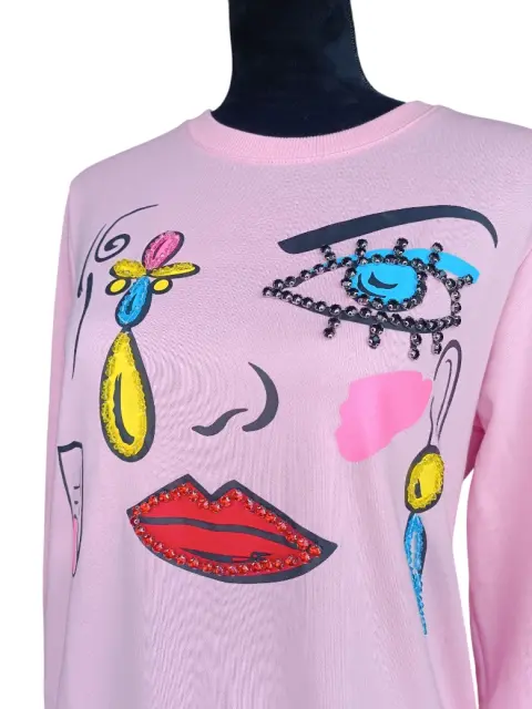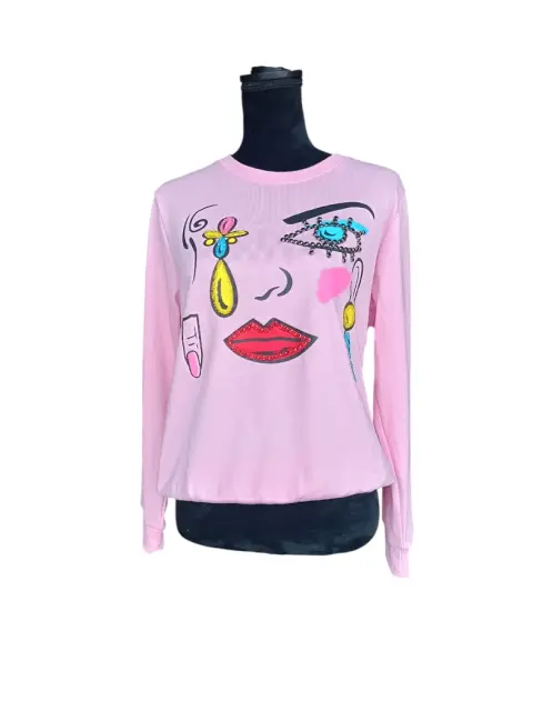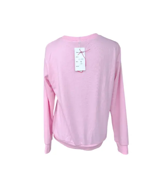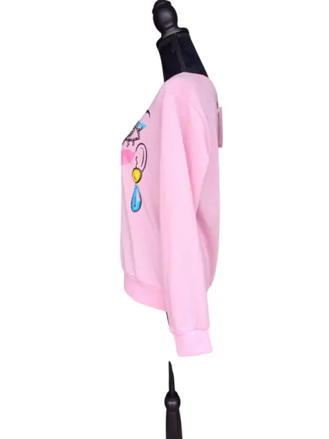 SUDADERA,COLOR ROSA, TALLA M,MIDE DE HOMBRO A HOMBRO 46 CM, DE AXILA A AXILA 48 CM, DE LARGO 64 CM CON APLICACIONES TIPO PIEDRAS Y CHAQUIRA