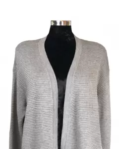 Cardigan en tela rigget color gris abierto al frente talla L marca H&M.