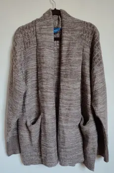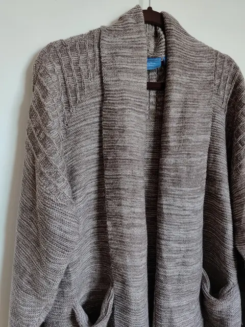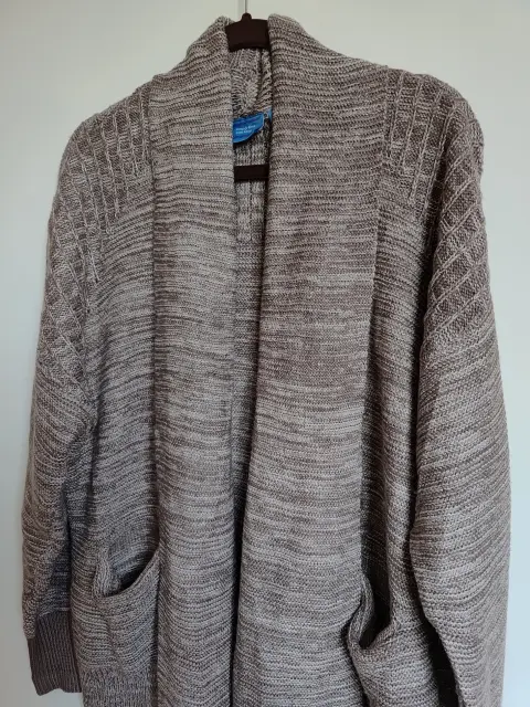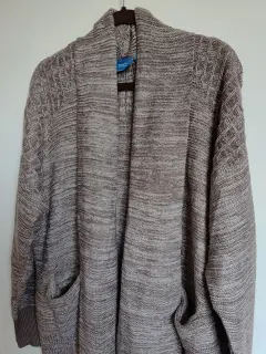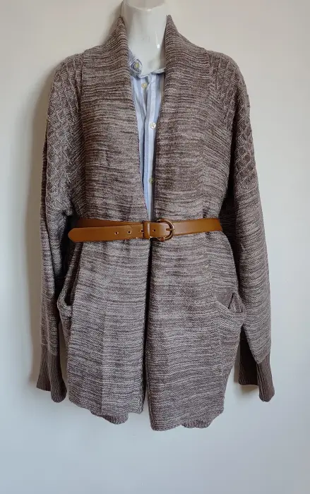 Cardigan largo tonos café y beige, talla XL, medida de axila a axila sin estirar 60cm, largo 77cmNo incluye el cinturón