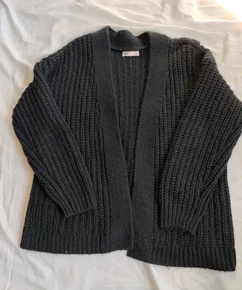 Cardigan largo talla Grande, queda bien para XL también, medida de axila a axila sin estirar 58cm, largo 68cm