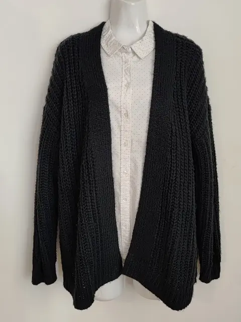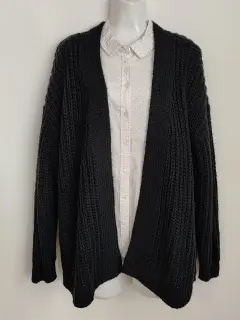 Cardigan negro largo. Cardigan largo talla Grande, queda bien para XL también, medida de axila a axila sin estirar 58cm, largo 68cm