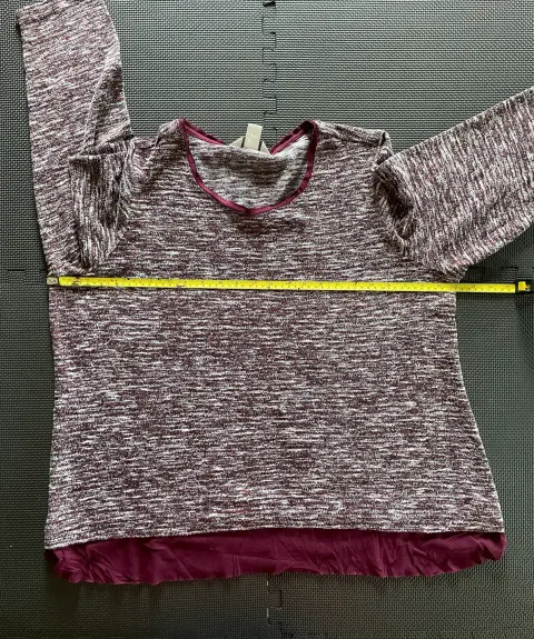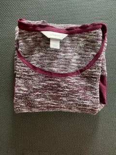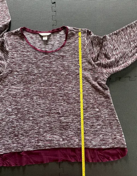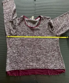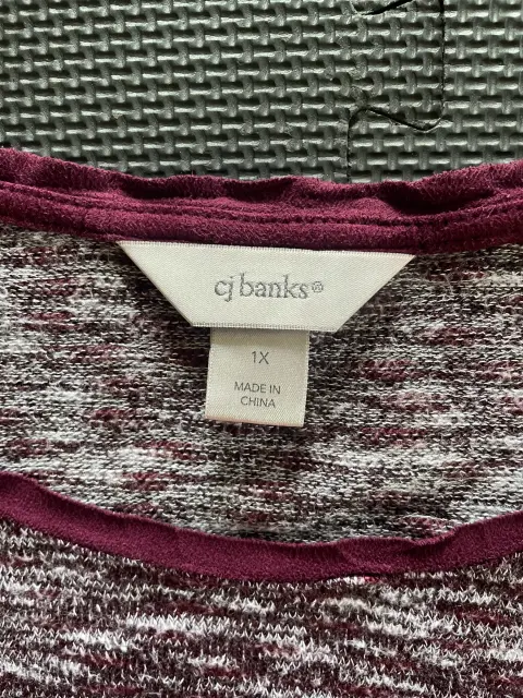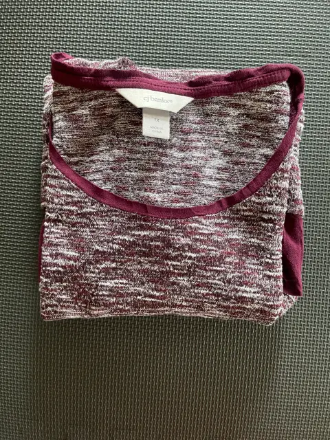 Cj Banks suéter jaspeado vino 👩. Cj Banks suéter ligero jaspeado en color vino. Con cuello redondo y terminados vino. Ideal para look semi formal en días frescos.Talla: 1XColor: vino/blancoMaterial: 74% poliéster, 24% rayón y 2% spandex.Cuidado: lavar en máquina Medidas: ancho de sisa a sisa: 61 cm, largo desde hombro hasta abajo: 66 cm