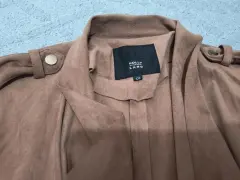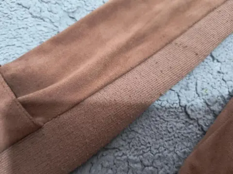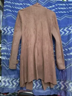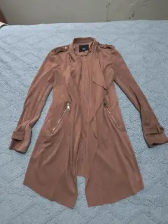 Ensamble ligero color palo de rosa, sin botones, cierre en bolsas laterales funcionando al 100, el único detalle es que tiene un poco de pelusa en los costados de la manga, (se puede apreciar en la foto)