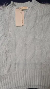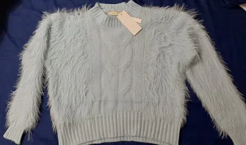 Hermoso suéter totalmente nuevo color azul pastel Talla chicaTejido cerrado. Mangas con hilo largo suelto que da aspecto de esponjoso