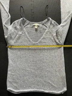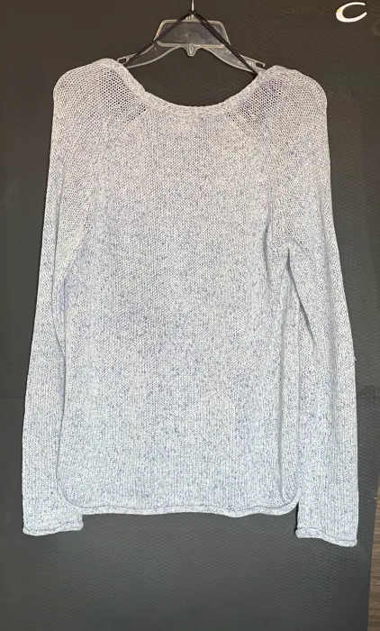 H&M suéter tejido en blanco con puntos en azul y cuello semi V. Cómodo, holgado, oversize para un look casual en días frescos.Talla: SColor: blancoMaterial: 100% acrílico Cuidado: lavar a manoMedidas: ancho de sisa a sisa: 50 cm, y largo desde hombro hasta abajo: 64 cm
