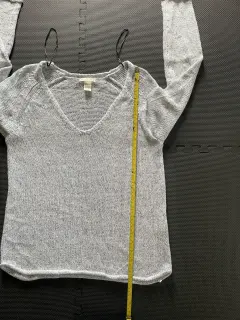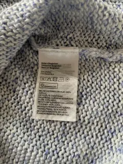 H&M suéter tejido 👩. H&M suéter tejido en blanco con puntos en azul y cuello semi V. Cómodo, holgado, oversize para un look casual en días frescos.Talla: SColor: blancoMaterial: 100% acrílico Cuidado: lavar a manoMedidas: ancho de sisa a sisa: 50 cm, y largo desde hombro hasta abajo: 64 cm