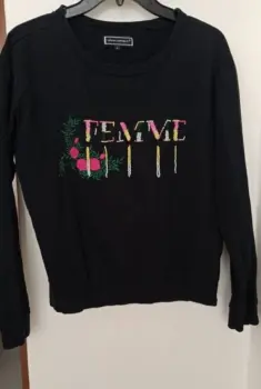 Sudadera negra con estampado. Axila-axila 51, Largo adelante 46 cm, largo atrás 53 cm.Bonito, en excelentes condiciones.