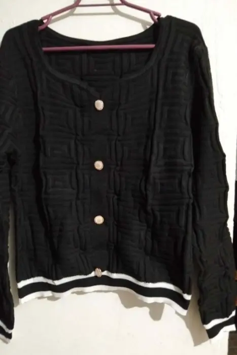 Sueter casual ligero con motivos blancos en puños y cintura, viene reducido queda bien a XL. 57 cm largo, 98 cm pecho, 42 cm hombroAcepto ofertasEnvío a la brevedad