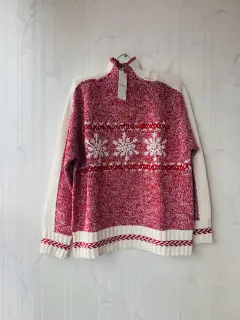 No todos los suéters de Navidad son feos, todo lo contrario hay muchos muy lindos! NUEVO! Hermoso suéter jaspeado en rojo sobre un tono hueso con bordados al frente y mangas. El protagonista es un copo de nieve bordados. El cuello es subido y se puede usar con leggins y botas. Para más frío incluir un térmico por debajo. Ideal con jeans o leggins. Perfecto para regalo. Más opciones en mi clóset