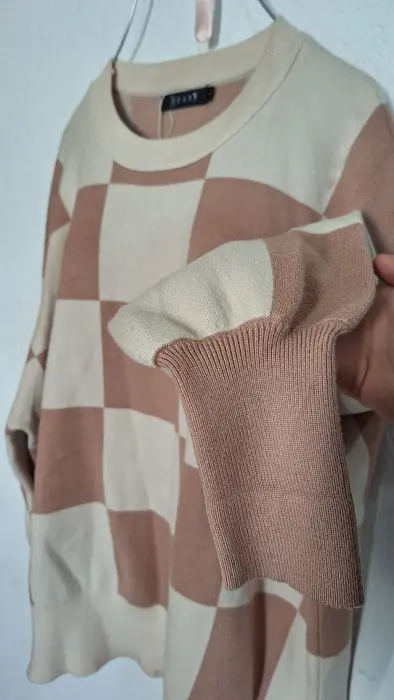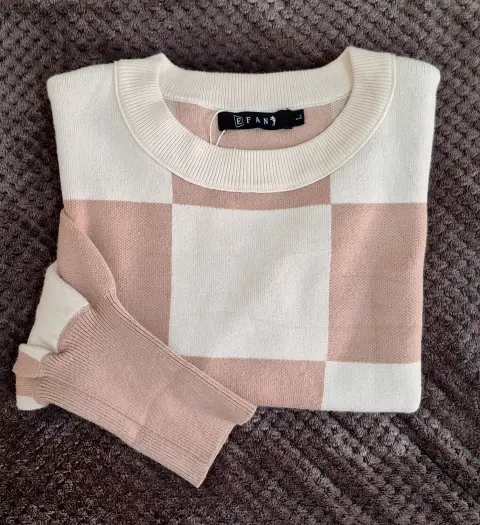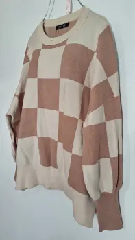 ¡Luce increíble y cómoda con este suéter de tendencia! 🤎 Con un diseño de cuadros en tonos neutros, es la pieza perfecta para elevar tu outfit diario.Corte: Oversize para un look relajado.Detalle top: Mangas tipo globo con puño ajustado que estilizan tus manos.Tela: Tejido suave al tacto, ideal para media estación.Estilo: Perfecto para combinar con jeans de tiro alto o leggings.