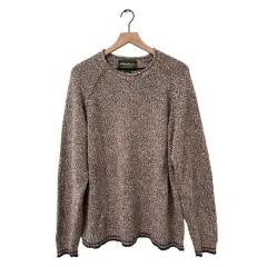 SUÉTER HERITAGE DE EDDIE BAUER 100%algodón Color café claro con bordes café oscuro en excelentes condiciones Talla L Medidas de hombro a hombro 45cm, de axila a axila 57cm, de manga 71cm, y de largo mide 71cm