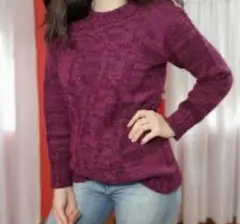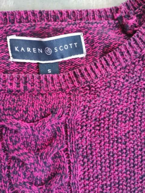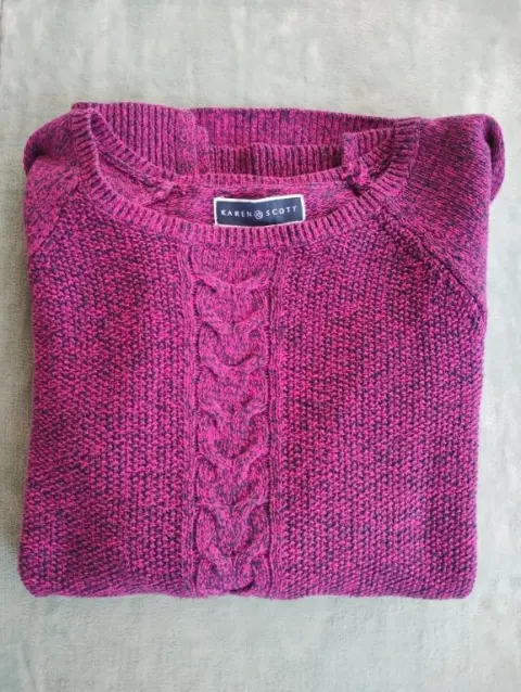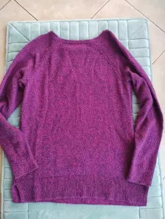 Suéter jaspeado en tonos morados, lo gero y calientito puesto una vez sin detalle marca Karen Scott talla S y puede quedar a M mide 40 cm de hombro, 48 cm de axila y 69 cm largo