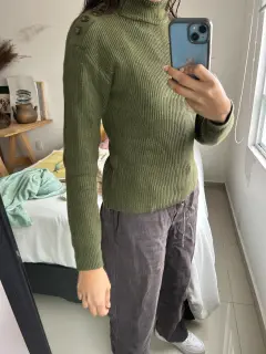 Sueter Mango grueso de color verde olivo que se ajusta a la piel (estira)