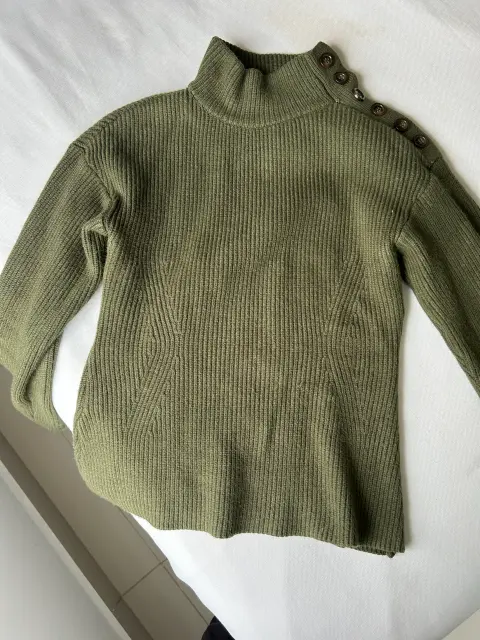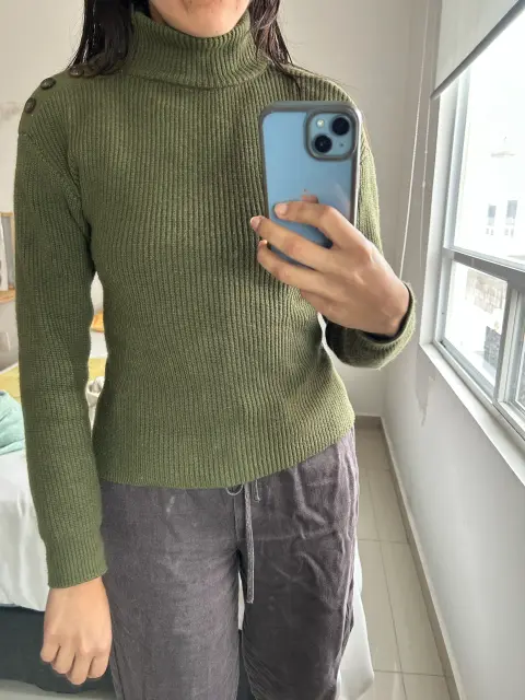 Sueter Mango verde olivo. Sueter Mango grueso de color verde olivo que se ajusta a la piel (estira)