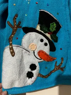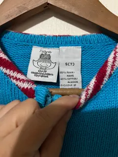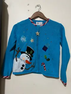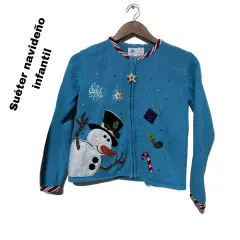Suéter navideño infantil, de talla 7 pero siento que viene amplio, medidas hombro 39 cm, axila 40 cm, largo 47 cm, sin detalles