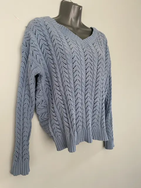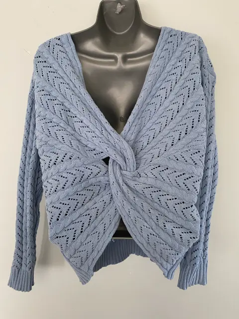 Bonito suéter azul, con escote cruzado.Medidas aproximadas:De axila a axila 55 cmLargo 60 cm